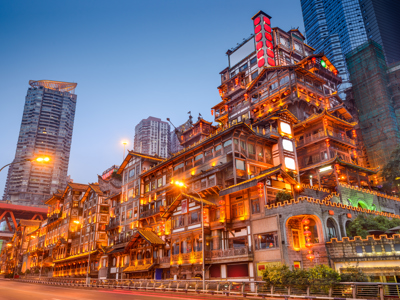 In de avond kijk je hier je ogen uit, de wolkenkrabbers zijn verlicht, bruggen vol gezellige lampjes en een skyline die doet denken aan een cyberpunk-film. Je kunt langs de rivier wandelen, streetfood proberen of neerstrijken bij een rooftopbar voor een drankje met uitzicht. Net zoals in Chengdu vind je ook hier lokale hotpot restaurants, die in de avond de plek zijn om samen te komen en te genieten van gerechten. Leuke plekjes om te eten zijn Jiefangbiei street met veel winkels en streetfood of de Jiaochangkou market. Je moet wel een beetje tegen pittig kunnen!