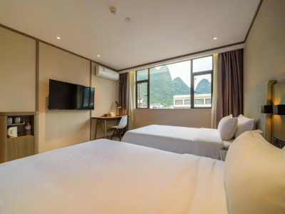Het HanTing Hotel ligt aan Jingfeng Road, net buiten het drukke centrum van Yangshuo en op korte afstand van West Street, waar je talloze cafés, eetkraampjes en kleine winkels vindt. Het hotel is eenvoudig maar netjes ingericht, met comfortabele kamers die ideaal zijn om bij te komen na een dag fietsen of wandelen tussen de karstbergen. Dankzij de rustige ligging slaap je goed, terwijl je toch binnen enkele minuten midden in de levendige sfeer van Yangshuo staat. Een fijne, praktische uitvalsbasis voor reizigers die de omgeving op een ontspannen manier willen verkennen.