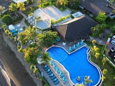 Dit hotel heeft een zeer mooie locatie direct aan zee. De kamers hebben een Balinese stijl met een eigen badkamer. Er is een heerlijk buitenzwembad aanwezig om lekker in af te koelen. Daarnaast is er een restaurant aanwezig en een traditionele massageservice aan het strand. Voor de kinderen is er een speelplaats.
