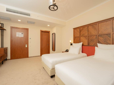 Als je met z'n tweeën op reis gaat, deel je samen een kamer (of tent). Je kunt kiezen tussen een 'twin' of een 'double'. Een twin-kamer heeft twee aparte bedden; een double heeft een tweepersoonsbed. Sommige hotels hebben alleen maar twin-kamers en soms zijn alle doubles al vergeven waardoor je toch twee aparte bedden hebt.