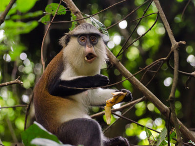 Na de wandeling rijden we naar het Tafi Atome Monkey Sanctuary, opgericht om de heilige apen in het omliggende bos te beschermen. Volgens de lokale traditie worden de apen beschouwd als boodschappers van de schildpadden en worden beide dieren vereerd door de dorpsbewoners. Aan het eind van de middag komen we aan in Akosombo, aan de oevers van het Voltameer, waar we overnachten.