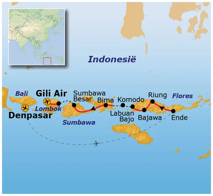 Tijdens deze bijzondere rondreis naar de Kleine Sunda eilanden zie je niet alleen de toeristische hoogtepunten, maar beleef je tijdens een wandeltocht en overnachting het traditionele leven van heel dichtbij! Natuurlijk kom je oog in oog te staan met de varanen op Komodo en bezoeken we de Kelimutu vulkaan. Een driedaagse boottocht brengt je bij de meest spectaculaire riffen om te snorkelen. Het is een actieve reis met voldoende rustpunten.
