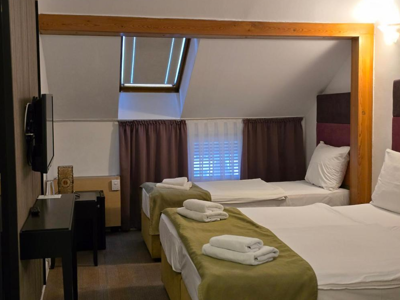 Hotel Mecavnik is een uniek en sfeervol complex. De accommodatie bestaat uit verschillende gebouwen en biedt een prachtig uitzicht. Het hotel beschikt over een restaurant, zwembad, sauna en tennisbaan. De sfeer van het dorpje Küstendorf zie je overal in terug in de accommodaties, zo ook in de kamers. Overal zie je houten details terug. De kamers hebben een eigen badkamer, tv en air-conditioning. Er is wifi beschikbaar in de gemeenschappelijke ruimtes