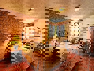 Las Golodrinas is een hotel met veel gele en witte tinten. In de patio tuin op het terras kun je in een ligstoel bijkomen. Ook zijn er maar liefst twee zwembaden. De hotelkamers zijn voorzien van een eigen badkamer, tv, airconditioning en wifi.