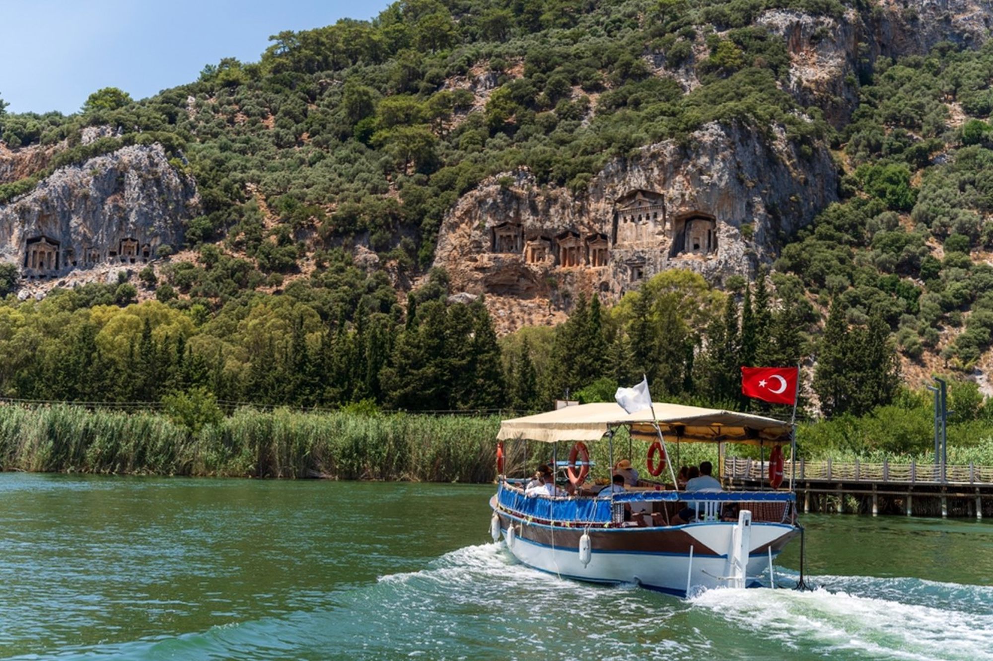 - Bekijk de rotstombes: Een niet te missen spectaculair zicht zijn de enigmatische Lycische rotstombes, die uitkijken over de rivier de Dalyan.